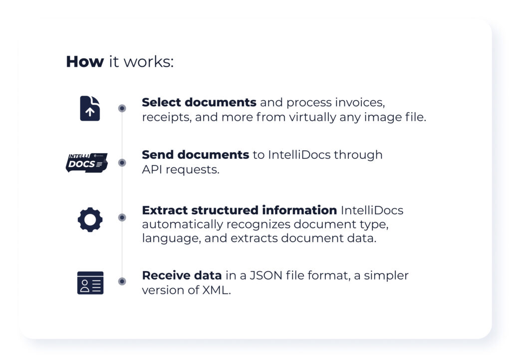 - O IntelliDocs usa AI e Machine Learning para extrair informações estruturadas sem intervenção manual.