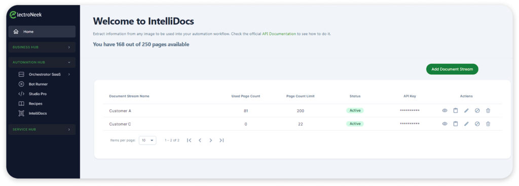 Novidade da ElectroNeek Automation Hub. O produto IntelliDocs oferece uma nova classe de recursos de IDP (Processamento Inteligente de Documentos).